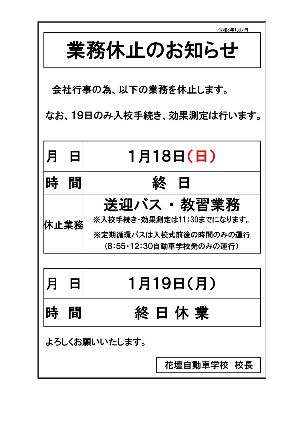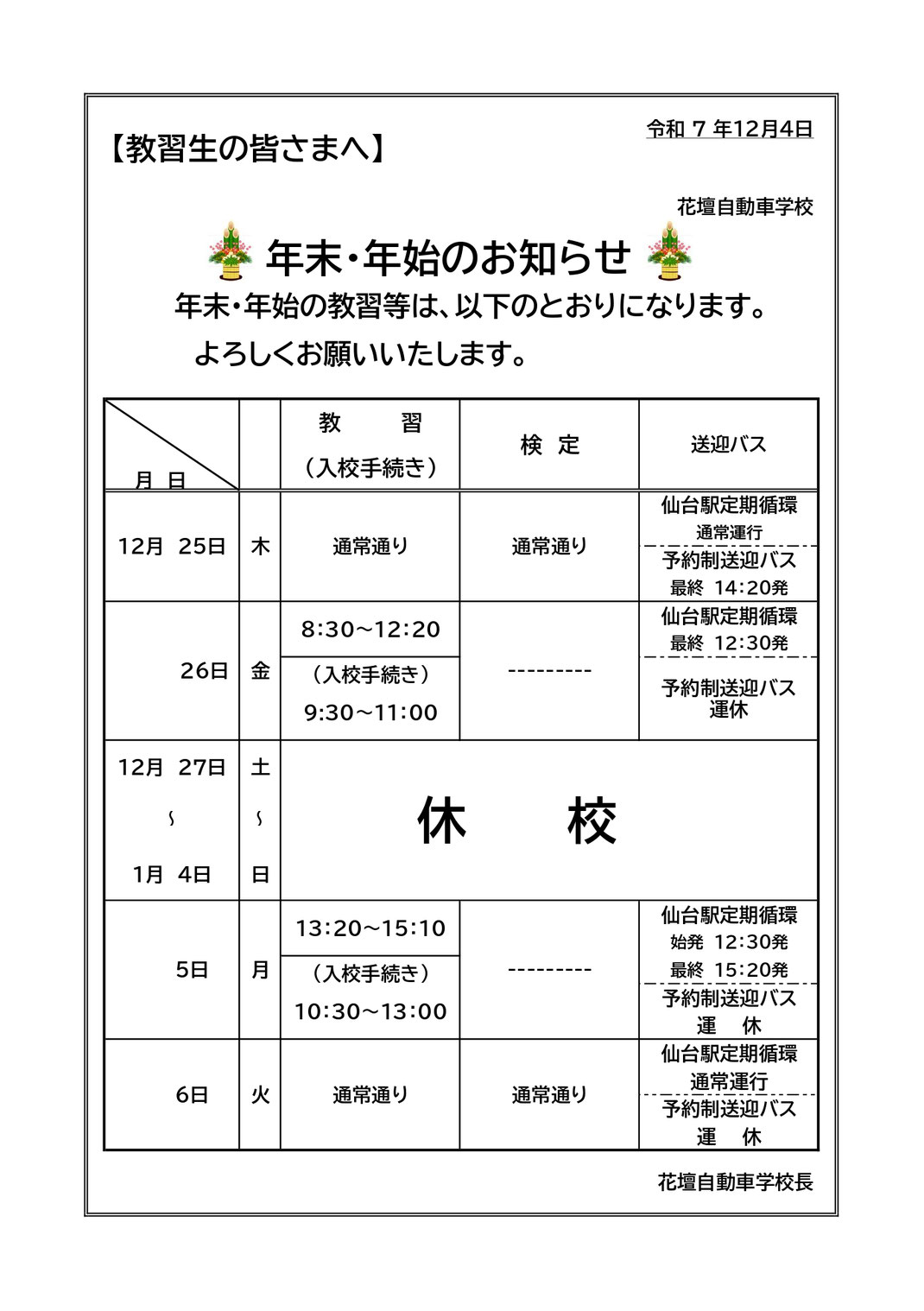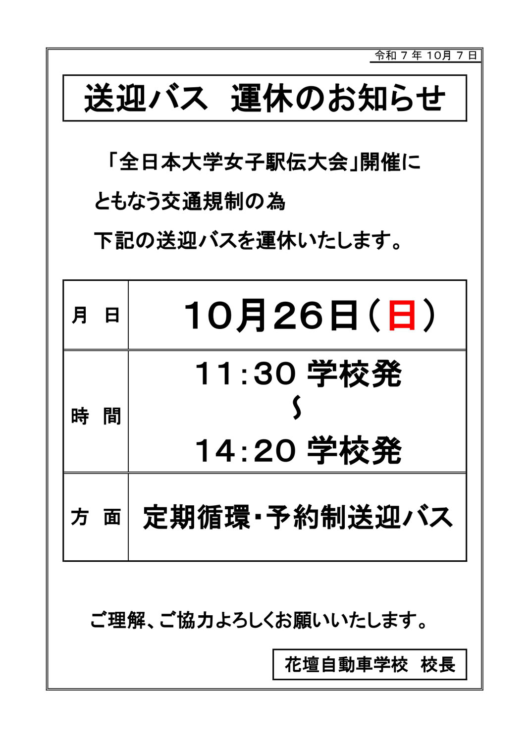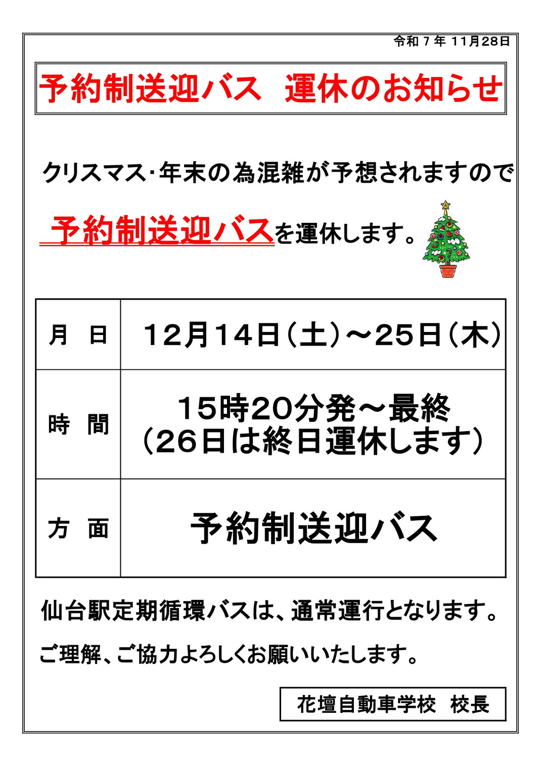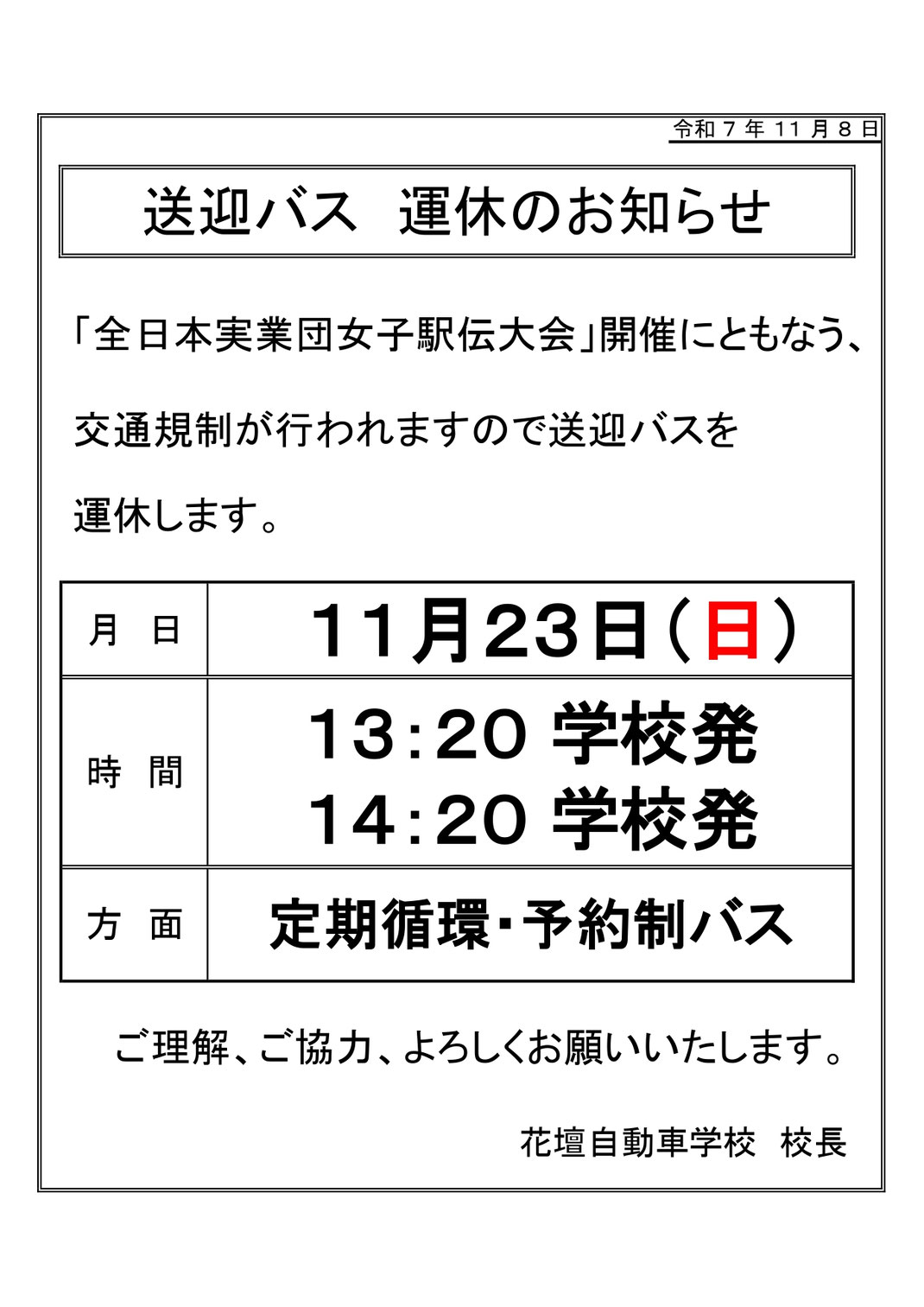 それに伴い時刻も変更になりますので、メニューの送迎バスページより、ご確認よろしく